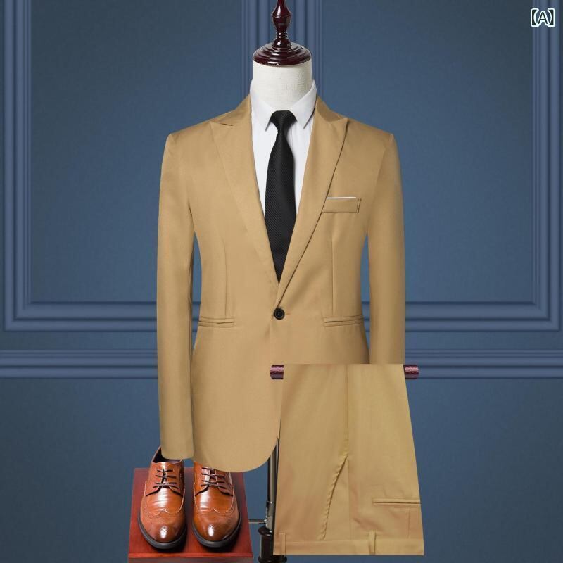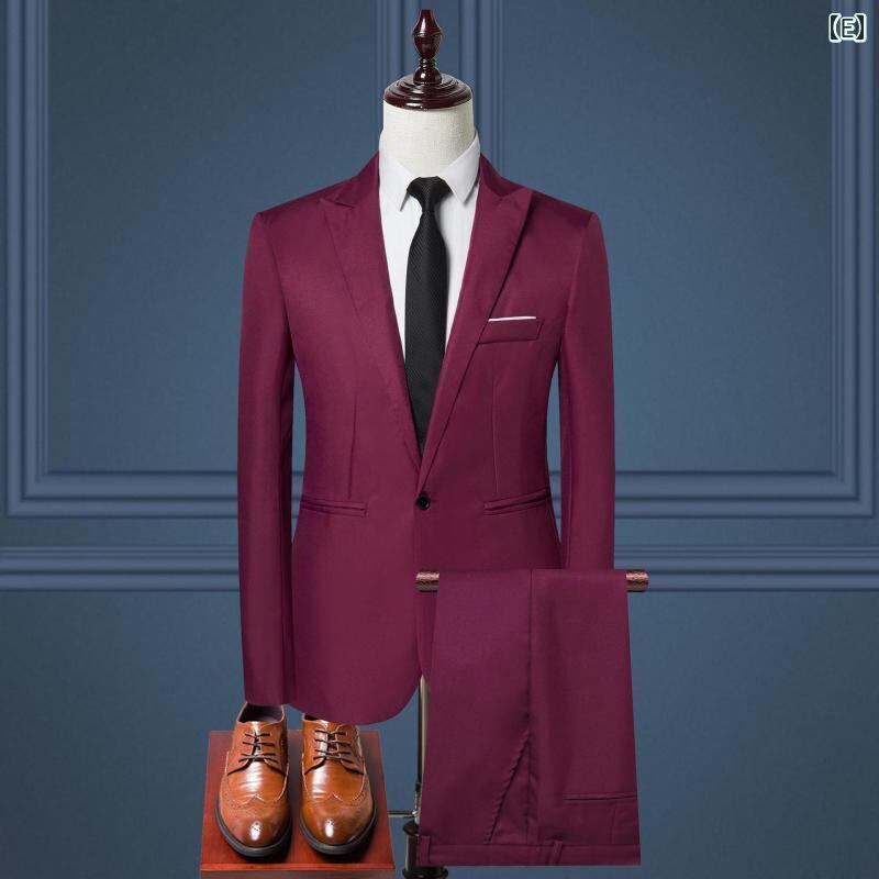 スーツ メンズ 男性用 セットアップ ファッション おしゃれ ビジネス フォーマル カジュアル スタイリッシュ スリムフィット 無地 春秋 結婚式 パーティー 通勤 オフィス 化学繊維 混紡 2点セット ツーピース ブラック グレー ネイビー ワインレッ