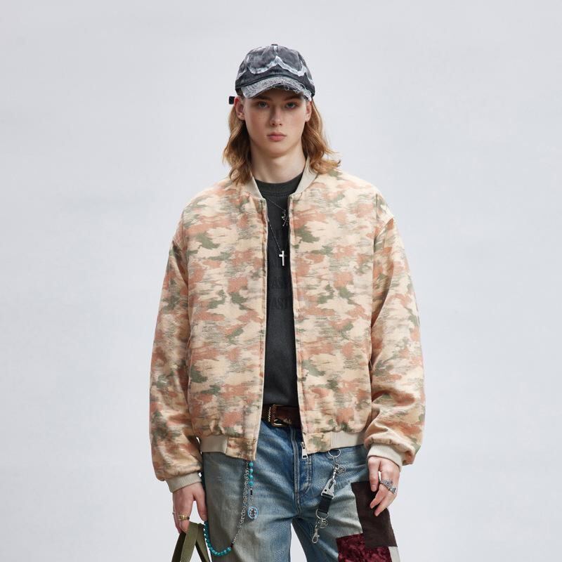 中綿ジャケット ユニセックス 冬 日系 レトロ ヴィンテージ ウォッシュ加工 ユーズド加工 迷彩柄 ミリタリー ワーク カジュアル ゆったり オーバーサイズ 厚手 保温 防寒 あったか 野球 ブルゾン