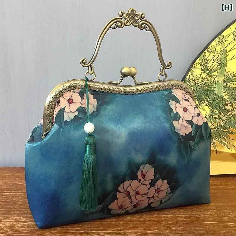 バッグ レディース 口金バッグ 新中華レトロ オリエンタル 織錦 シェル型 ミニ ハンドバッグ チェーン タッセル 手作り チャイナドレス パーティー お出かけ 秋冬