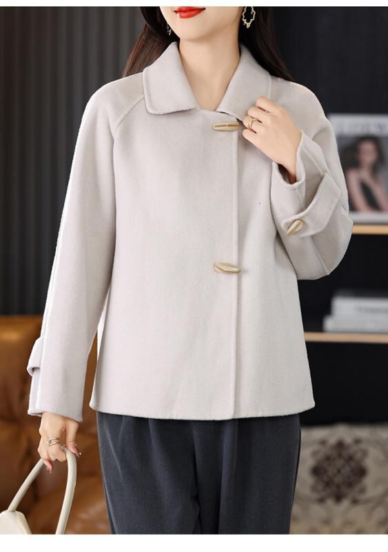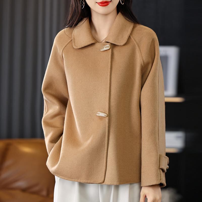 コート レディース 秋冬 ダブルフェイス ウール メルトン 厚手 ショート丈 ケープ ポンチョ ゆったり ルーズフィット エレガント きれいめ 上品 通勤 オフィス 襟付き