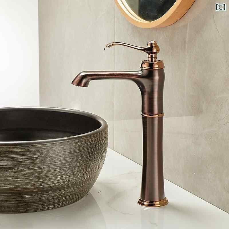 洗面水栓 アメリカンレトロ アンティーク調 ブロンズ 全銅製 冷温水混合栓 卓上設置 カウンター設置 洗面台 洗面ボウル 手洗い器 浴室 洗面所