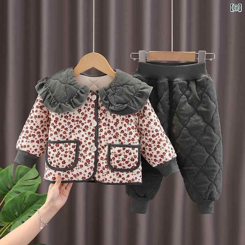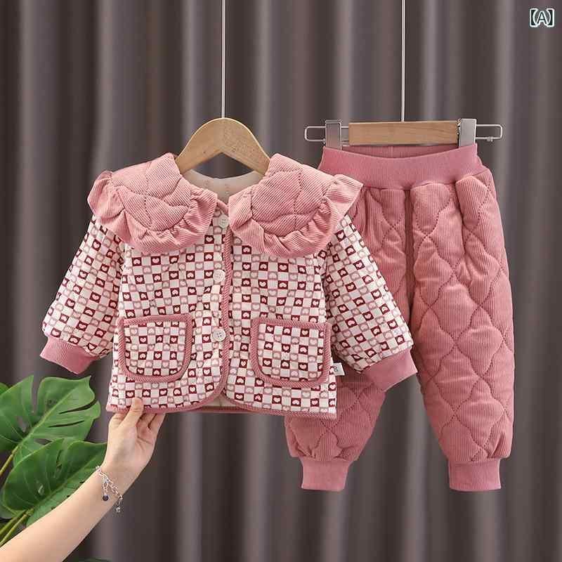 セットアップ 女の子 キッズ 子供服 厚手 中綿 キルティング 小花柄 ジャケット パンツ 上下セット おしゃれ かわいい あったか コットン 秋冬