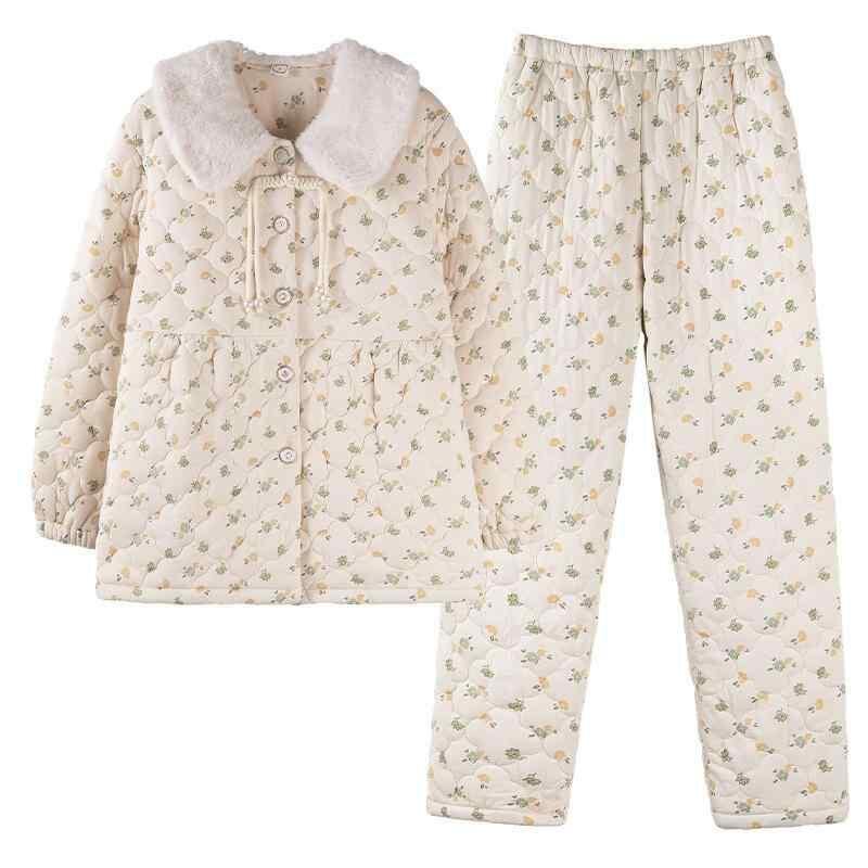 パジャマ レディース 女性用 冬 極厚 三層中綿入り サンゴフリース あったか 保温 ルームウェア 部屋着 上下セット 前開き 襟付き 長袖 長ズボン 快適 おうち時間 お泊り リラックス