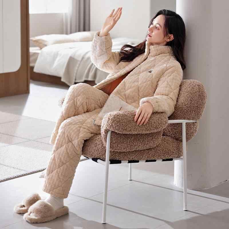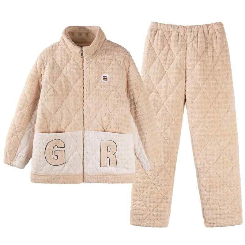 ・カテゴリ: パジャマ・主な素材: コーラルベルベット、中綿・スタイル: セットアップ、シンプルカジュアル・厚み: 厚手・生地厚さ: 超厚手 (351-400g/m²)・ネックライン: スタンドカラー・袖丈: 長袖・丈: ロングパンツ・機能: カジュアル、通気性、バスローブ、ルームウェア、保温、快適、普段着・対象: 若年女性・シーン: アウトドア、ホームウェア・カラー展開: リコリスピンク、ジェイドグリーン、シナモンピンク、スカイブルー、キャメル、ヨモギグリーン、ホワイト・サイズ展開: M、L、XL、XXL、XXXL・前開き: ファスナー