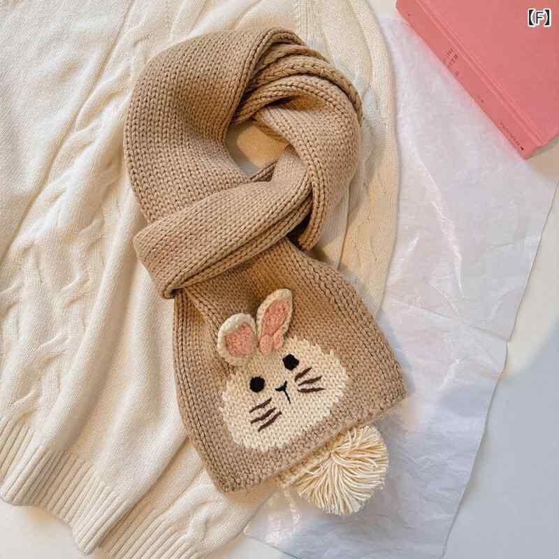 マフラー レディース 親子 ペア ハンドメイド刺繍 うさぎ ラビット ファーポンポン付き かわいい キュート フェミニン おしゃれ インスタ映え ニット 毛糸 アクリル ふわふわ もこもこ あったか 防寒 秋冬