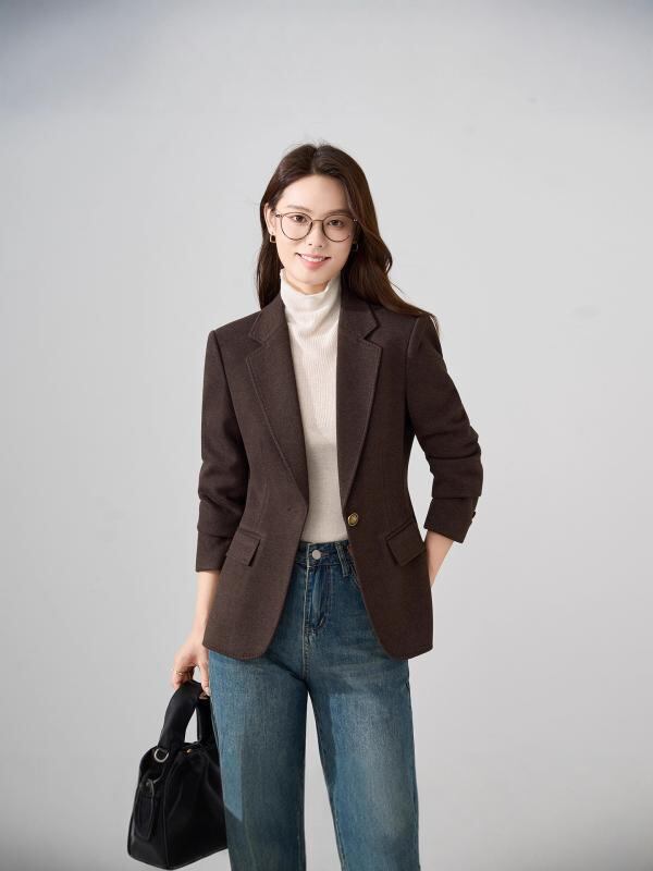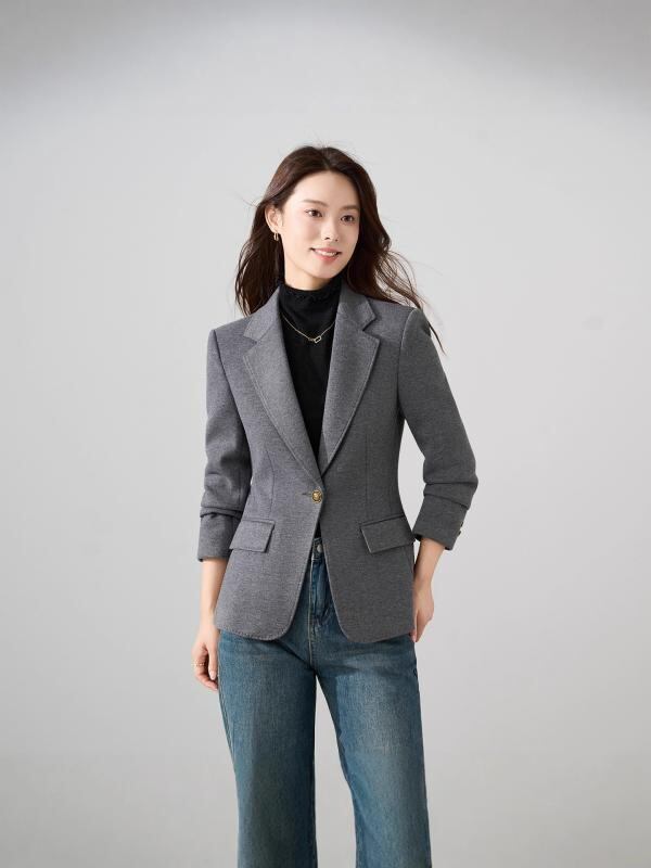 テーラードジャケット レディース ショート丈 ウールブレンド 上質 小柄向け オフィス 通勤 ビジネス きれいめ 秋冬 アウター スタイリッシュ