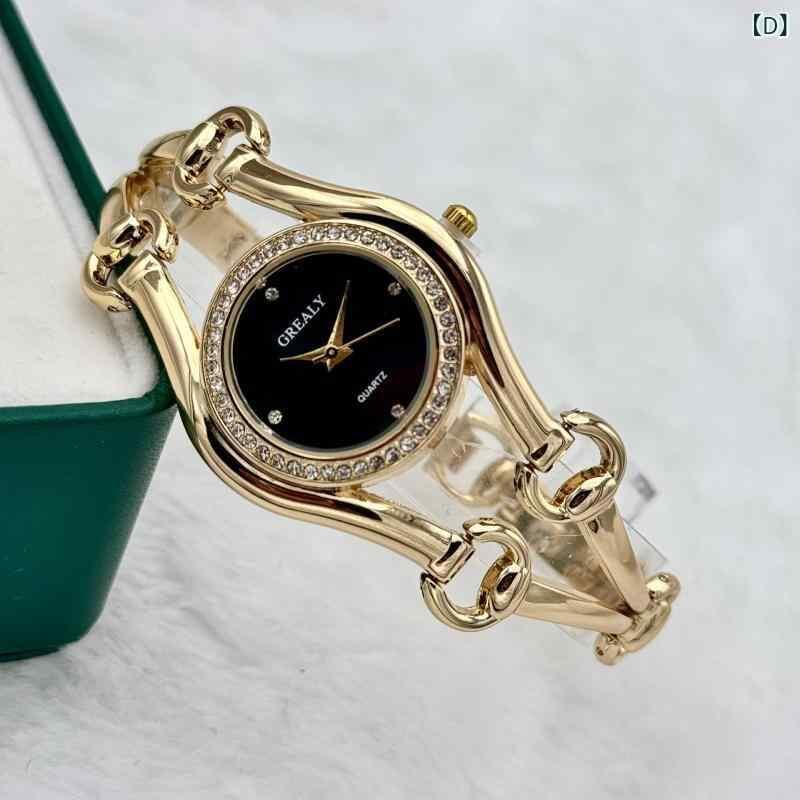 腕時計 レディース 女性用 ブレスレット ウォッチ クォーツ おしゃれ ファッション 学生 普段使い カジュアル ラウンド型 合金製 ジュエリーバックル ゴールドカラー