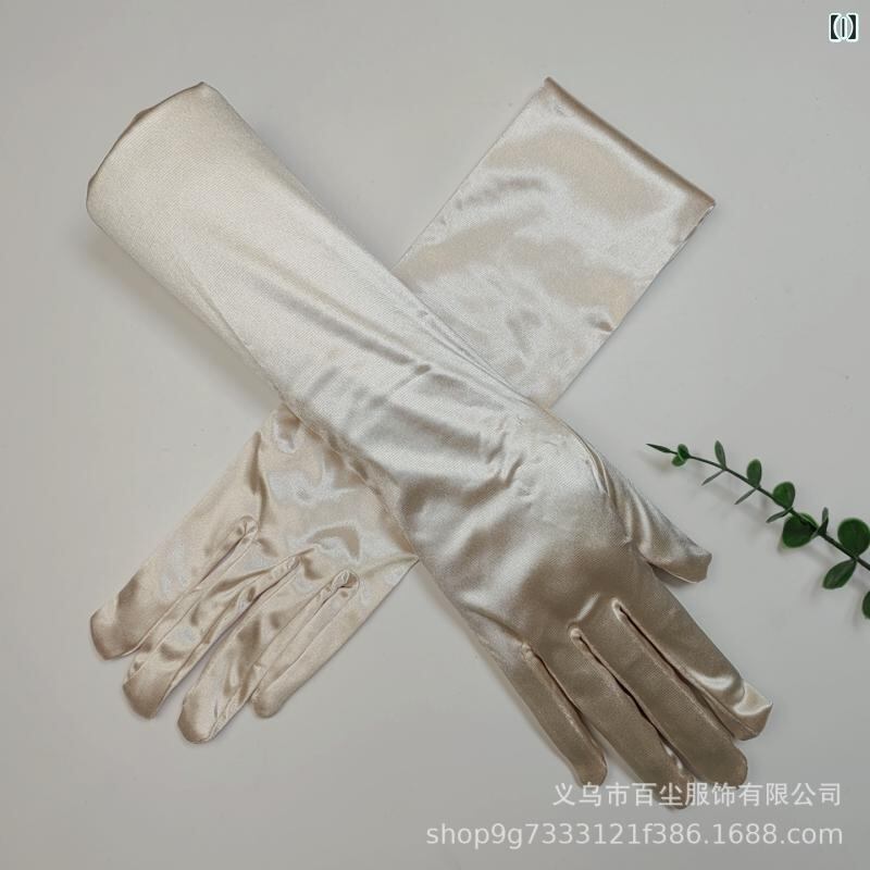 グローブ レディース ロング ストレッチ サテン ウェディング ブライダル 花嫁 結婚式 披露宴 イブニングドレス フォーマル 舞台 発表会 UVカット 日焼け対策