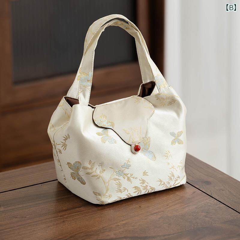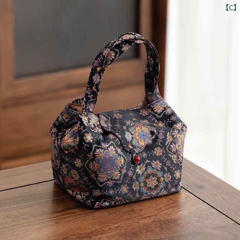 茶道具 錦織り 新中華風 携帯用 ポータブル 手提げ 厚手 中綿入り お稽古 旅行用 保護ケース 花柄