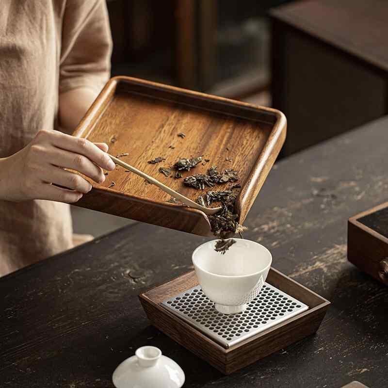 茶盤 ウォールナット材 天然木 無垢材 プーアル茶餅 固形茶 緊圧茶 茶葉崩し分け選別 整理収納トレー 茶道具 茶器 ティープレート 本格的 上質