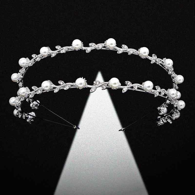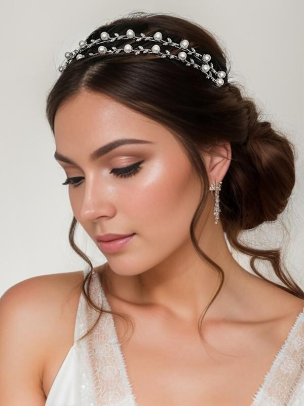 頭飾り レディース 花嫁 ウェディング ブライダル 結婚式 パーティー 合金製 ラインストーン パール パール 二連 カチューシャ ヘアアクセサリー シルバー 髪飾り