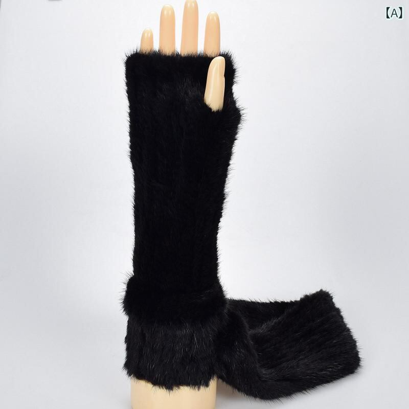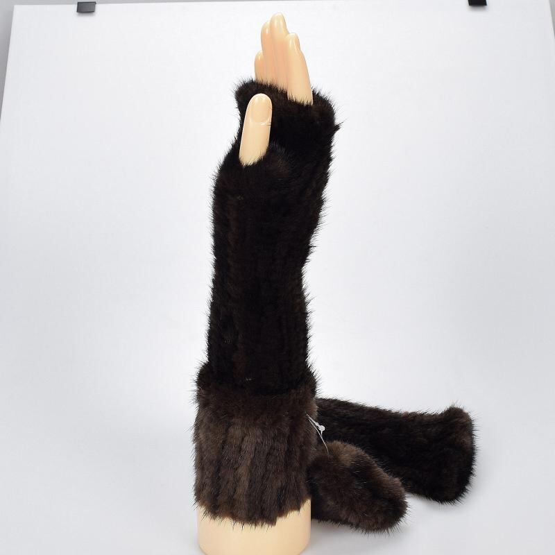 手袋 レディース 女性用 ミンクファー 毛皮 ハーフフィンガーグローブ 半指 指なし ミドル丈 かわいい 防寒 保温 アームウォーマー アームカバー 秋冬 黒色 ブラウン
