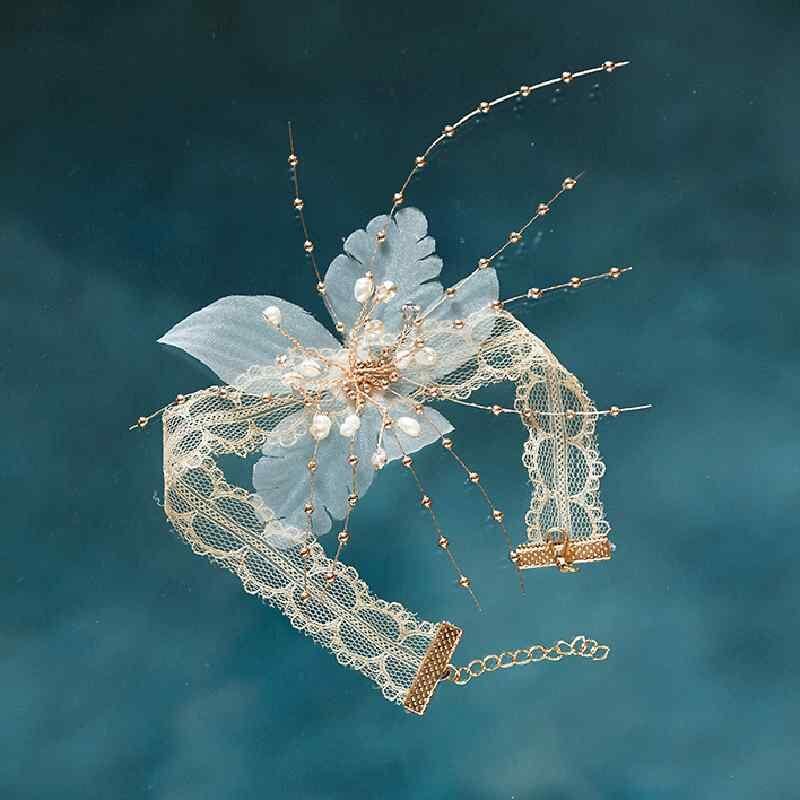 ネックレス レディース 韓国風 花嫁 ウェディング ブライダル アクセサリー レース ハンドメイド ラインストーン フラワー チョーカー デイリー 普段使い コーヒー ホワイト