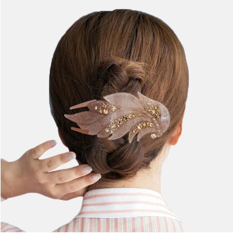 ヘアクリップ レディース ママ向け 韓国風 ラインストーン 花モチーフ アクリル製 大きめ ダッカールクリップ バンスクリップ まとめ髪 アップスタイル 髪留め 上品 エレガント 通勤 オフィス カジュアル