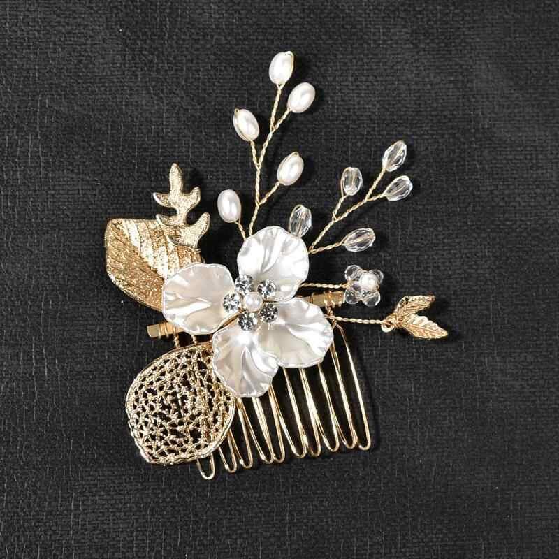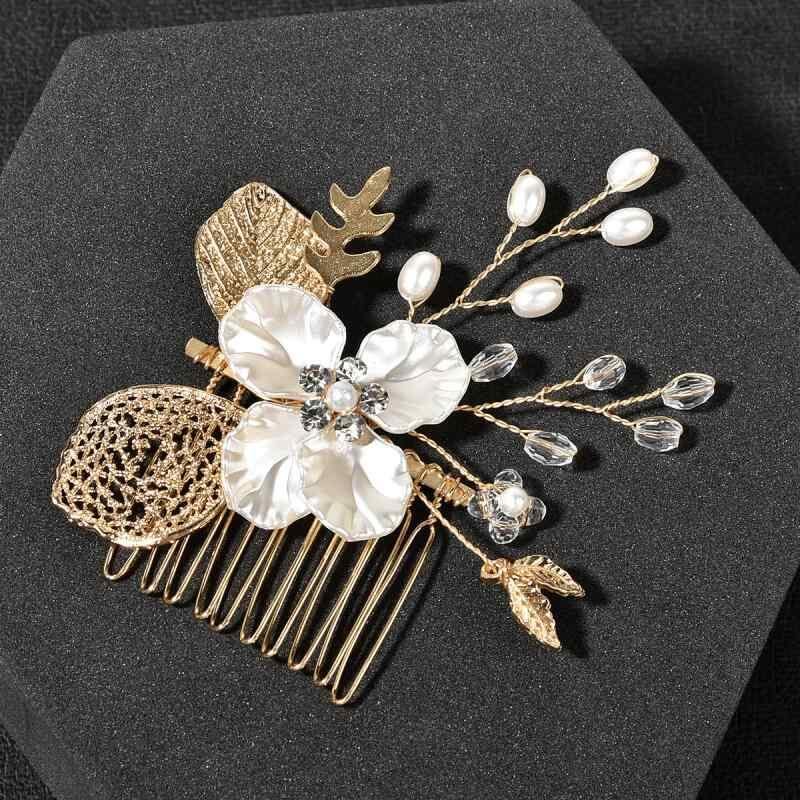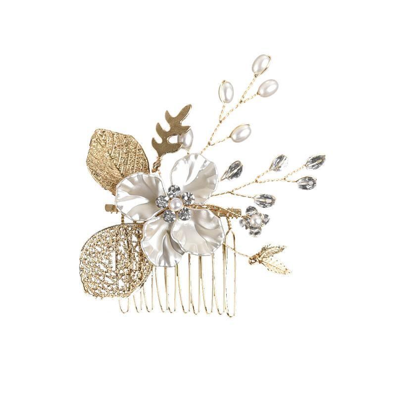ヘアアクセサリー レディース 女性用 ゴールド 金色 リーフ 葉っぱ ブライダル ウェディング 結婚式 花嫁 コーム かんざし 合金製 ヘッドドレス 欧米スタイル 髪飾り