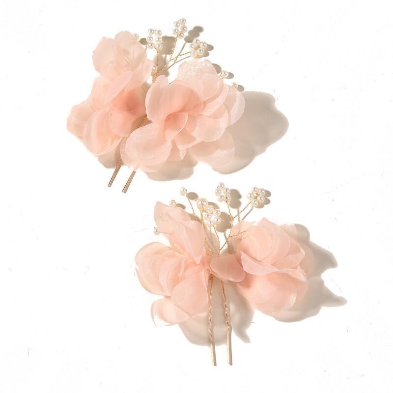 髪飾り レディース ヘッドドレス 韓国風 ブライダル ウェディング 花嫁 結婚式 前撮り フォトウェディング パーティー お呼ばれ パール Uピン かんざし チュール 優美 エレガント ヘアアクセサリー 白 ピンク