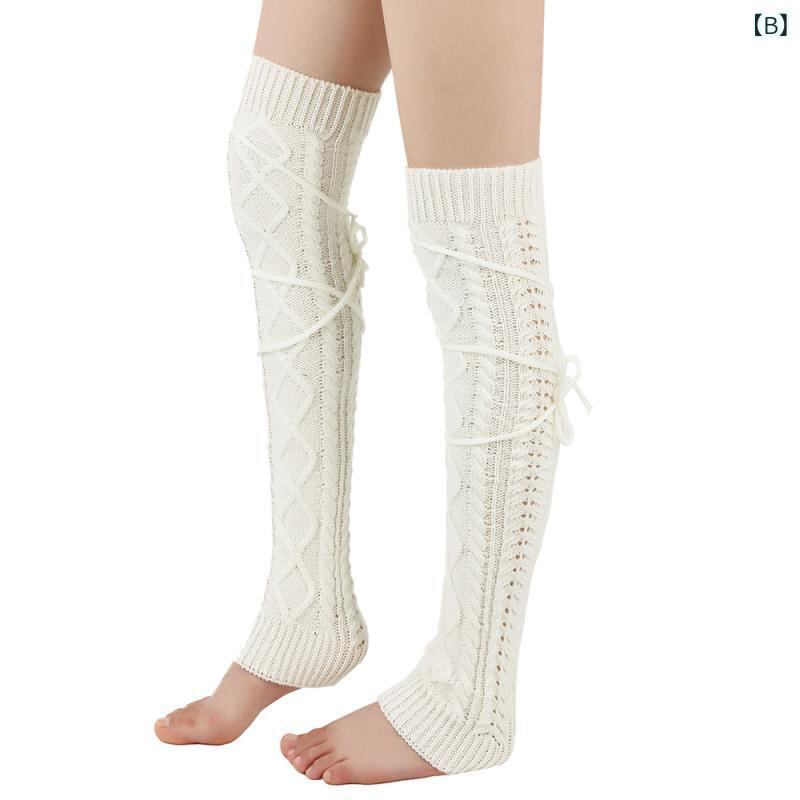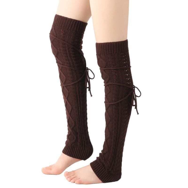 レッグウォーマー レディース アクリルニット 秋冬 ニーハイ丈 ロング丈 無地 防寒 あったか 欧米風 レースアップ カジュアル 普段使い 冷え対策 ソックス