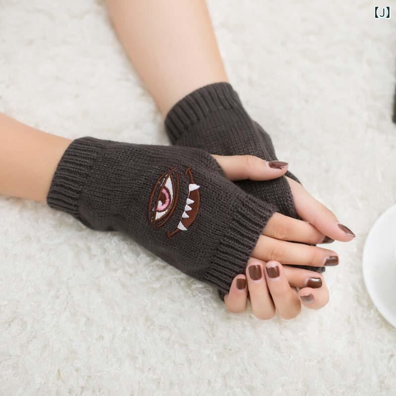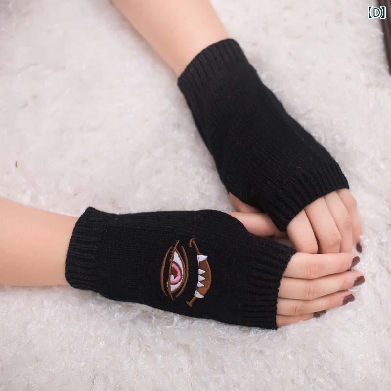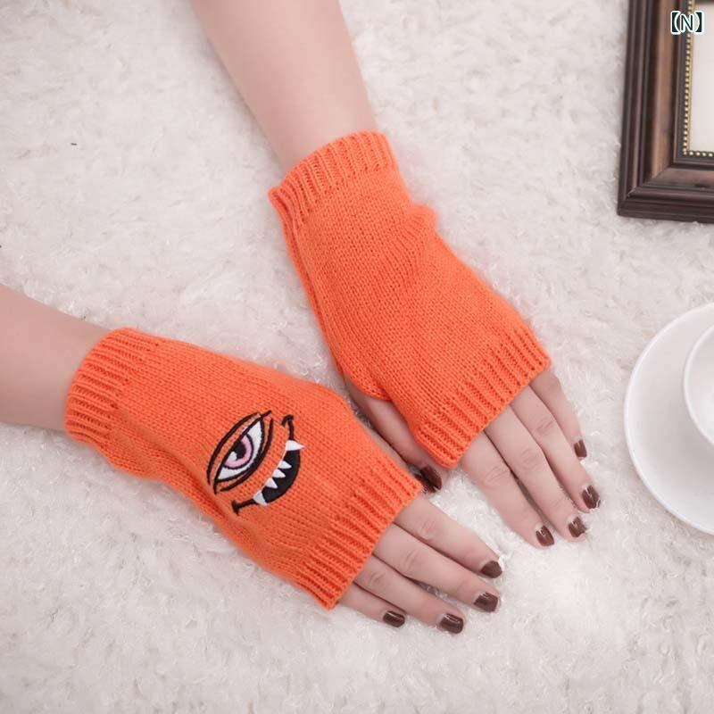 手袋 原宿系 目玉 悪魔 刺繍 指なしグローブ アームウォーマー ニット アクリル 防寒 保温 ユニーク カジュアル ストリート 秋冬 多色