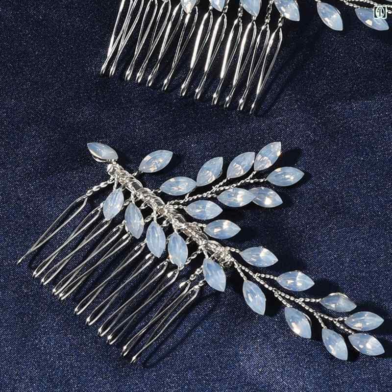 ヘアコーム レディース 花嫁 ブライダル ウェディング ライトブルー 水色 ジルコニア クリスタル ラインストーン 合金 ハンドメイド 欧米風 ヘッドドレス 髪飾り 結婚式 披露宴 パーティー エレガント 上品 華やか