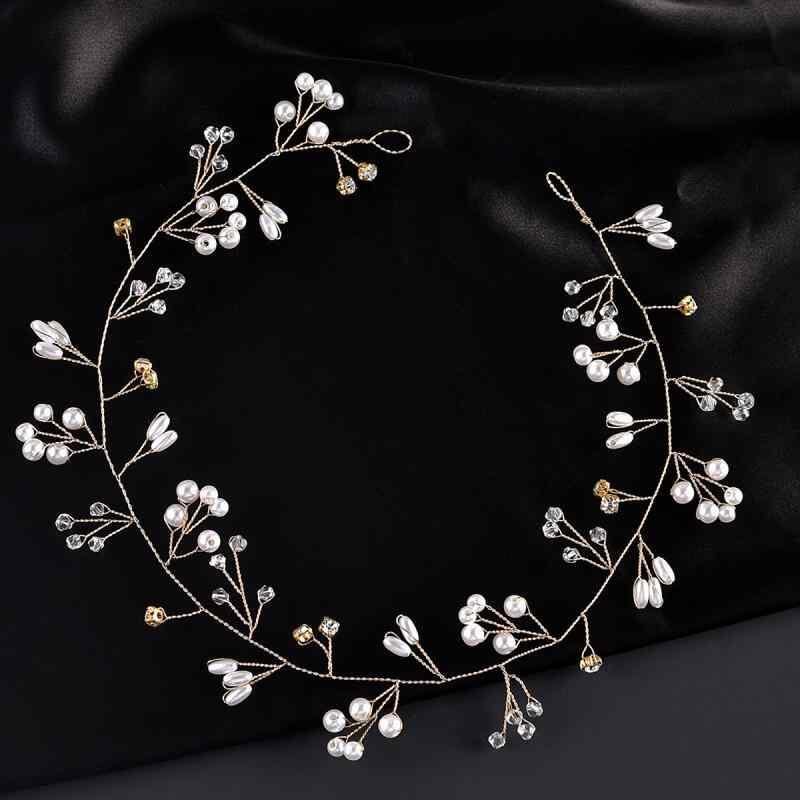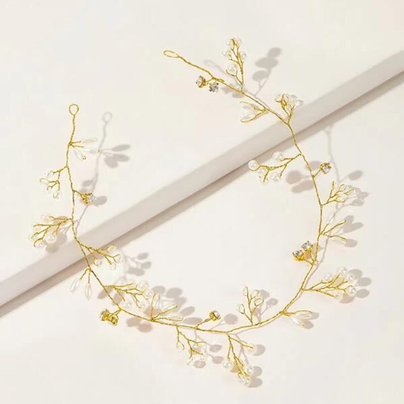 ヘッドドレス レディース ブライダル ウェディング 欧米風 花嫁 結婚式 ハンドメイド パール パール ヘアバンド 髪飾り シルバー ゴールド 35cm