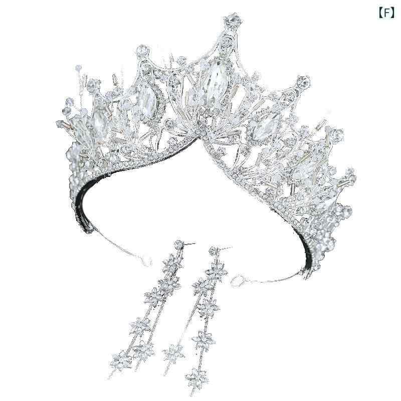ティアラ ブライダル 花嫁 クラウン ラインストーン 豪華 エレガント 韓国風 ウェディング 結婚式 撮影 ドレス 礼装 ヘッドドレス ヘアアクセサリー イヤリング ピアス 合金製 フラワーモチーフ シルバー ゴールド