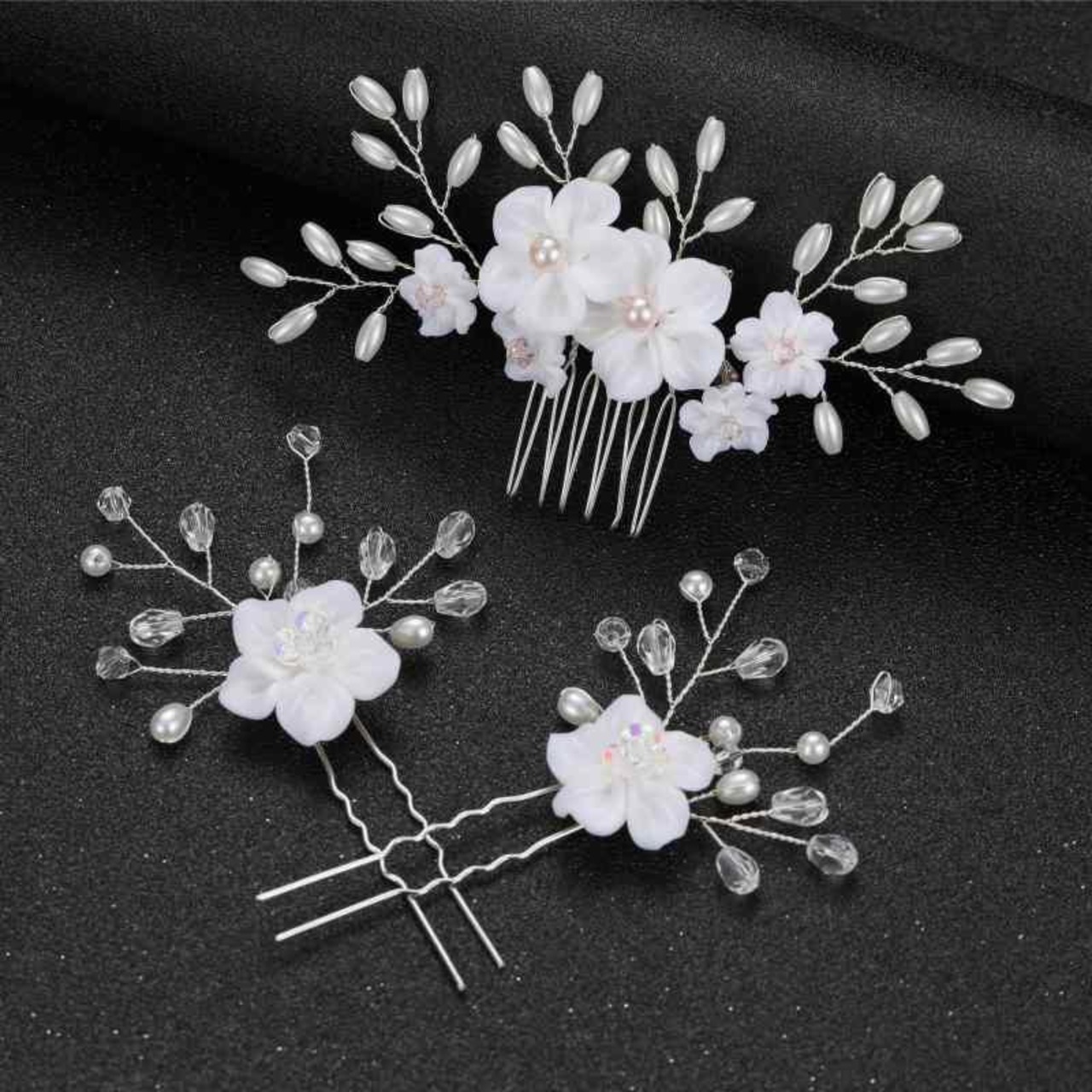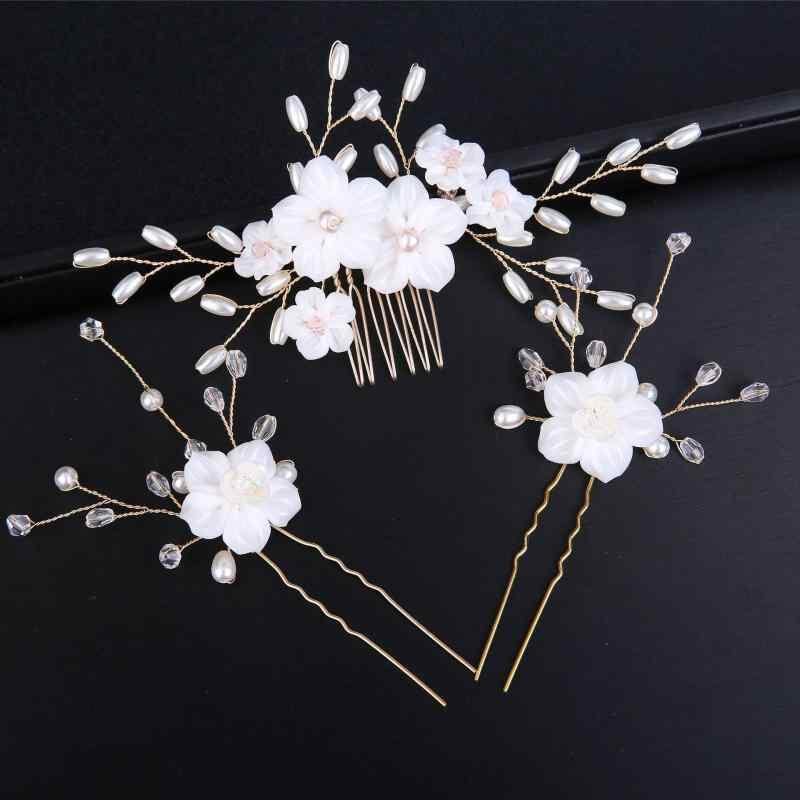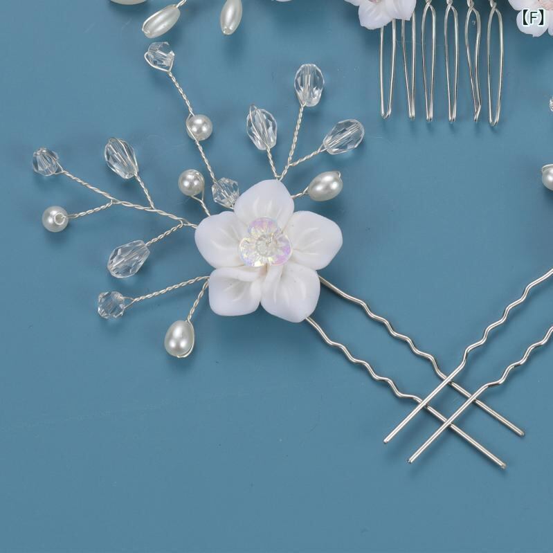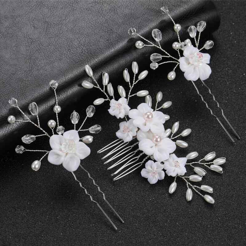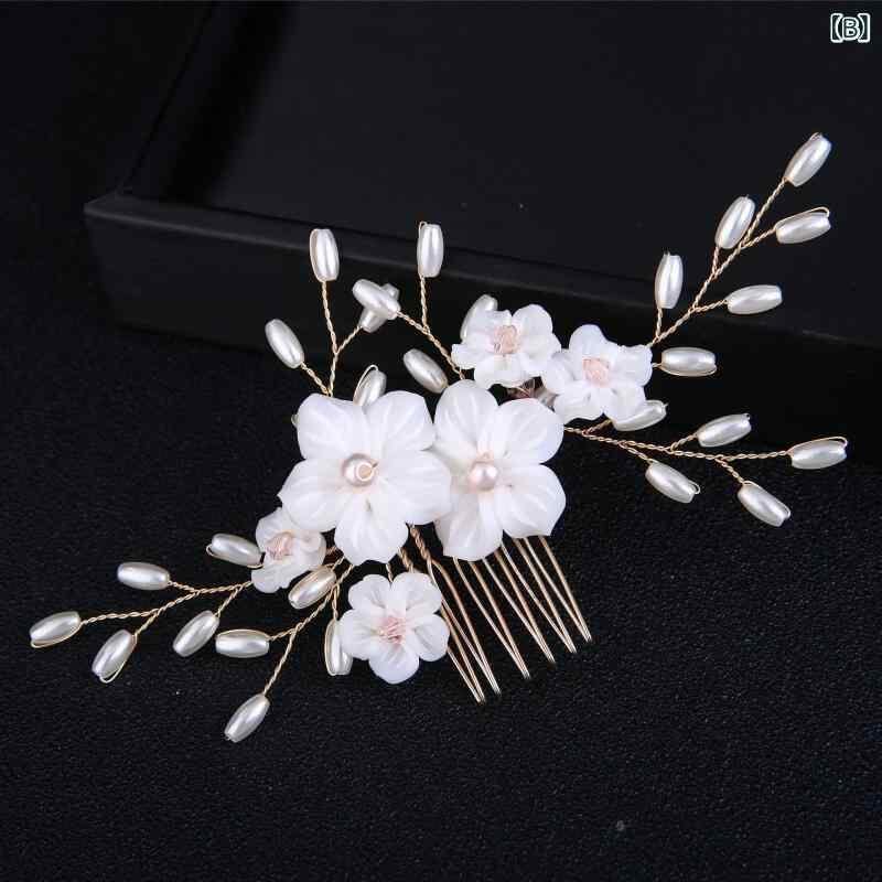 ヘアアクセサリー 花嫁 ウェディング ブライダル 韓国風 ホワイト フラワー パール パール 手作り 髪飾り コーム かんざし 結婚式 披露宴 パーティー 上品 エレガント