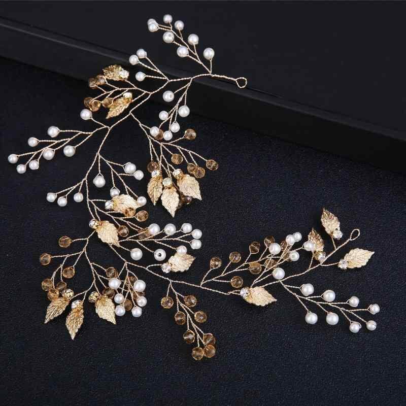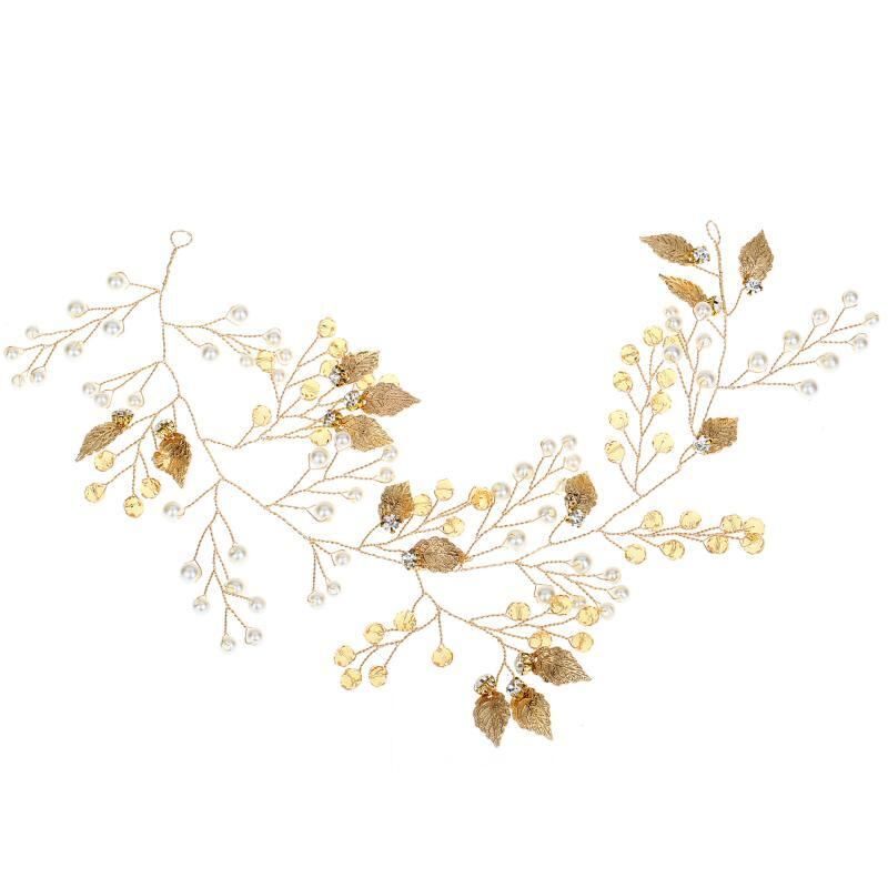 ヘアアクセサリー レディース 女性用 ヘッドドレス ゴールドカラー 合金 リーフ 葉っぱモチーフ パール パール ジルコニア ラインストーン ハンドメイド 手作り 結婚式 披露宴 パーティー ブライダル ウェディング フォーマル 上品 華やか 髪飾り