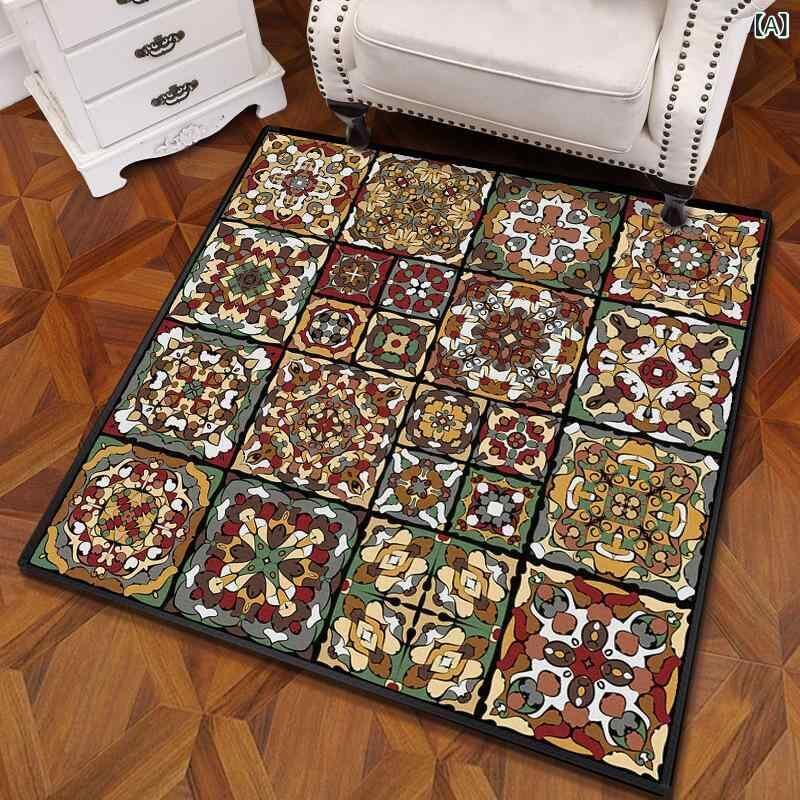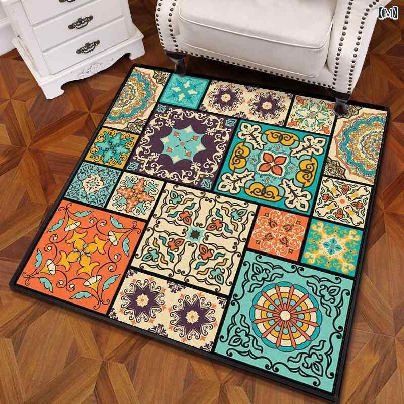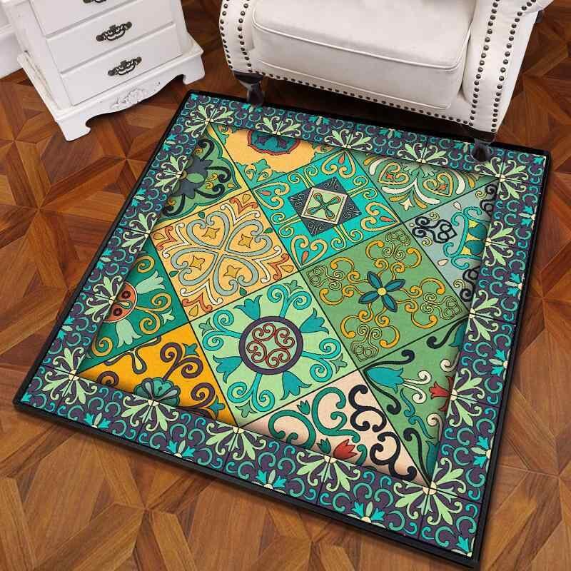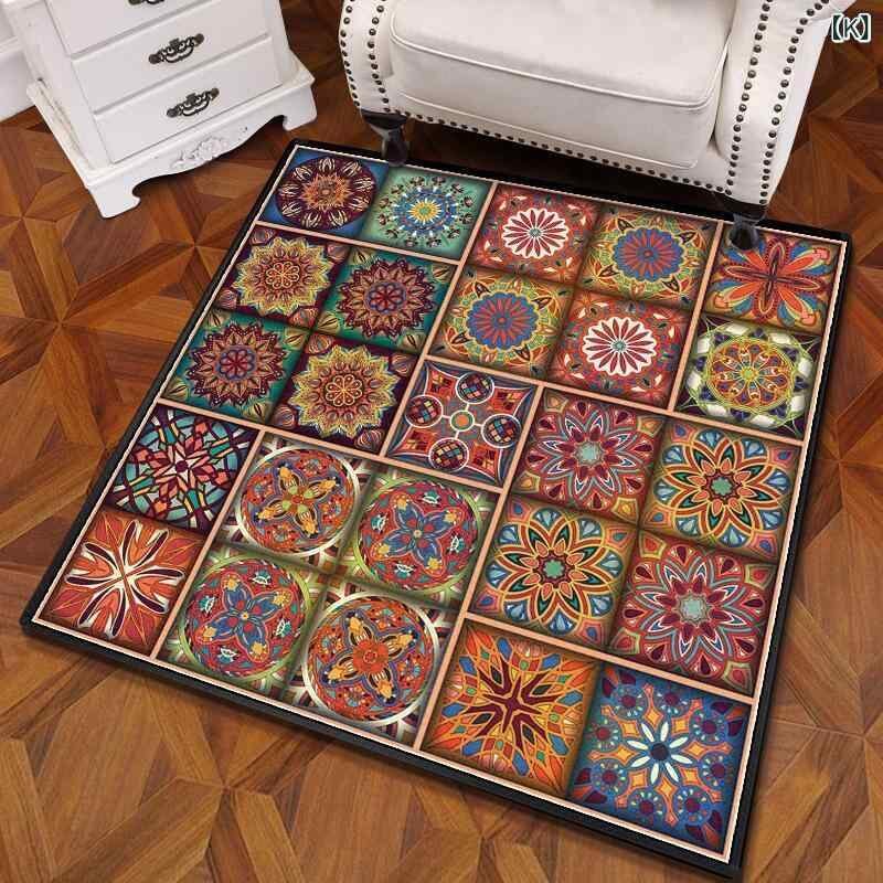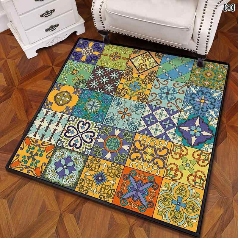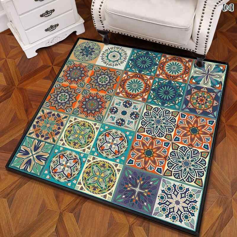 ラグ カーペット フロア ボヘミアン 民族風 エスニック アジアン 3Dプリント 正方形 スクエア 滑り止め 洗える ポリエステル リビング ダイニング 寝室 書斎 玄関 ローテーブル チェア用 敷物 オールシーズン おしゃれ インテリア