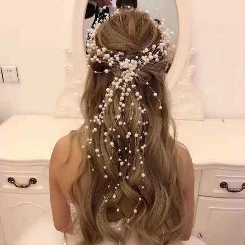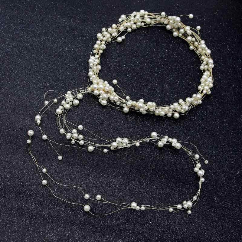 ヘアアクセサリー キッズ 女の子 韓国風 ウェディング 花嫁 結婚式 ブライズメイド 発表会 花冠 フラワーティアラ パール パール 銅線 ハンドメイド ヘアバンド カチューシャ ロング 高級感 ゴールド シルバー
