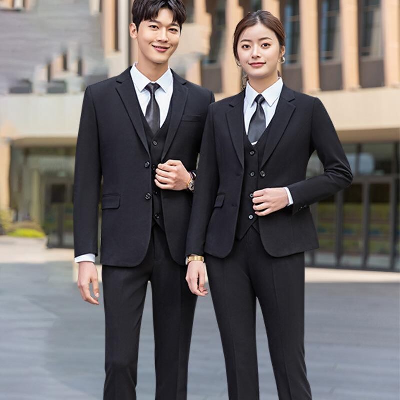 ・カラー展開: メンズブラック(スーツ+パンツ)、レディースブラック(スーツ+パンツ)、メンズブラックベスト、レディースブラックベスト、メンズホワイトシャツ、レディースホワイトシャツ