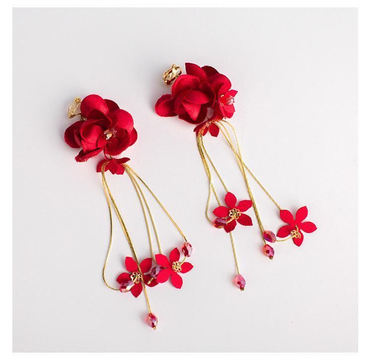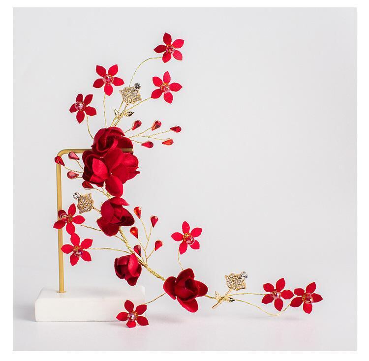ヘッドドレス レディース 花嫁 ブライダル ウェディング 韓国風 真紅 ローズ フラワー 髪飾り セット 結婚式 披露宴 二次会 パーティー 優美 華やか エレガント ヘアアクセサリー