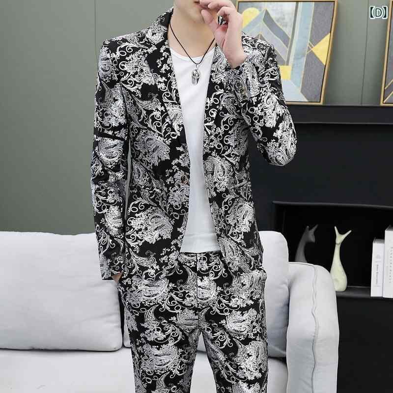 テーラードジャケット メンズ 男性用 カジュアル 韓国風 トレンド スリムフィット 細身シルエット 秋冬 ラペルカラー シングルブレスト 一つボタン 長袖 コットンブレンド ポリエステル 綿混 レギュラー丈