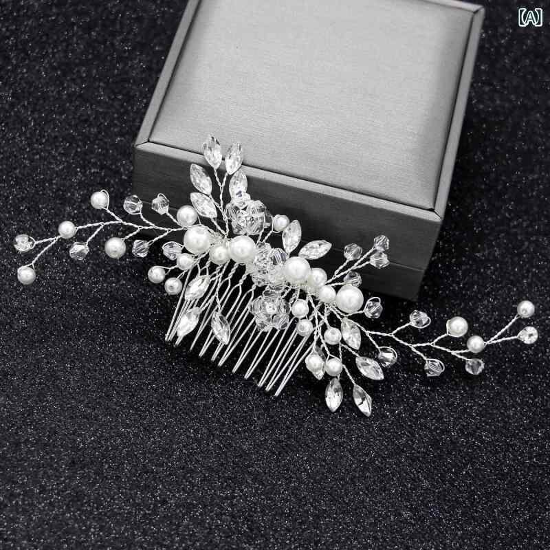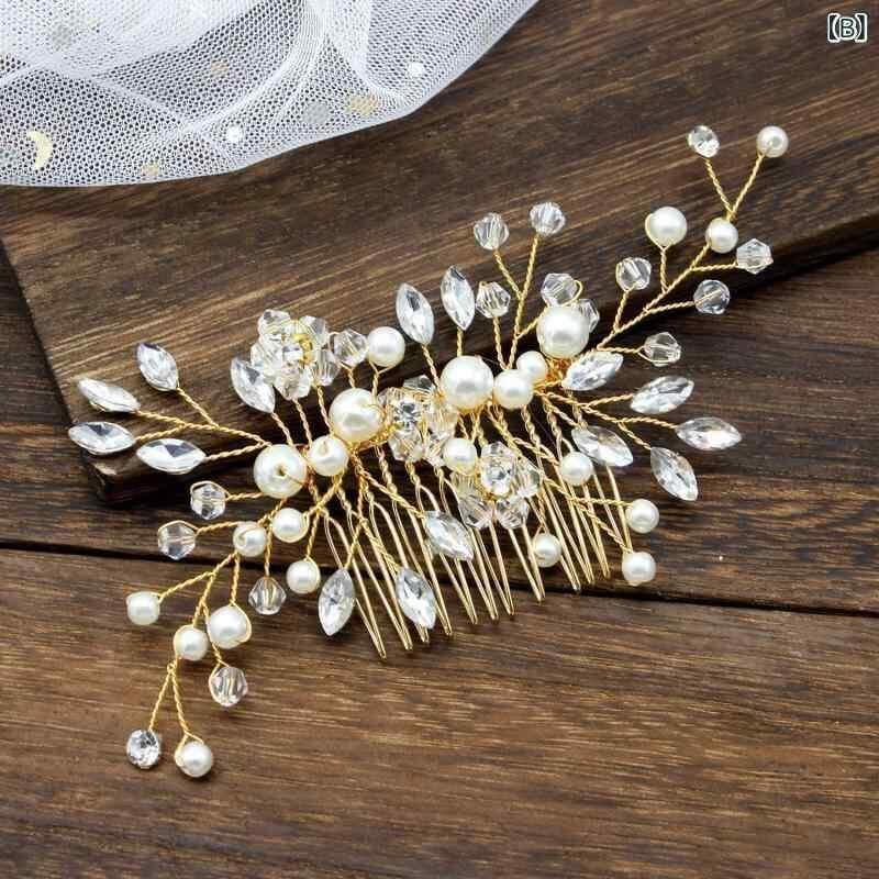 ヘアアクセサリー レディース ヘッドドレス パール クリスタル コーム 簪 ウェディング ブライダル 結婚式 披露宴 二次会 パーティー お呼ばれ フォーマル 卒業式 入学式 発表会 上品 華やか エレガント シルバー ゴールド ローズゴールド