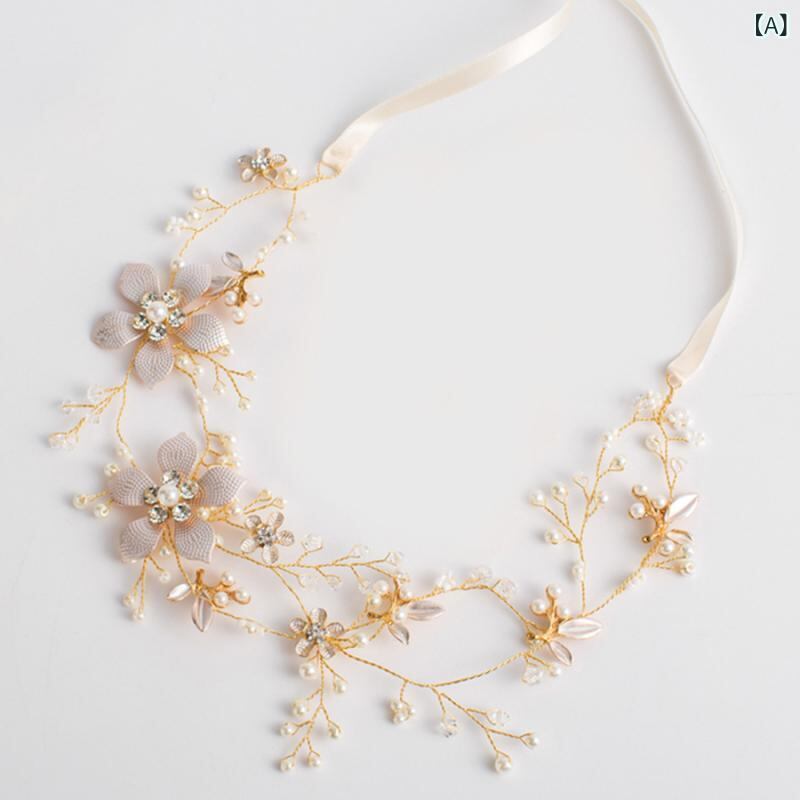 ヘッドドレス レディース 女性用 ウェディング ブライダル 結婚式 花嫁 披露宴 韓国風 ハンドメイド 合金製 ゴールド フラワー ツイストビーズ ソフトチェーン 髪飾り カチューシャ