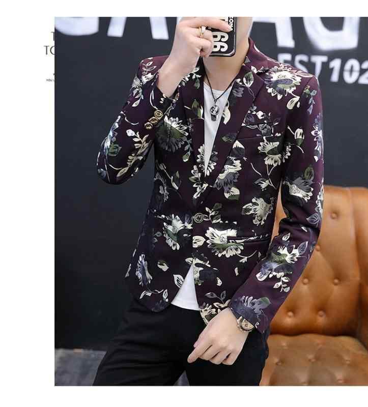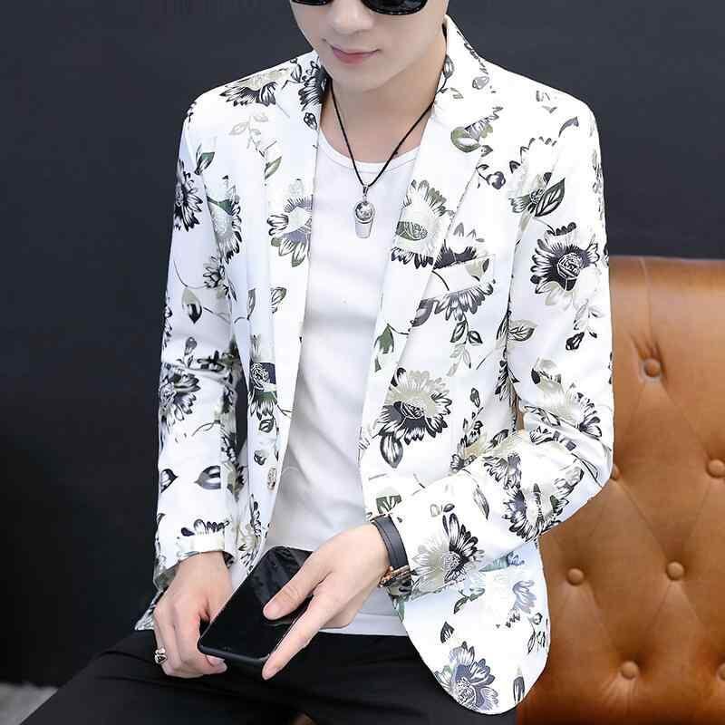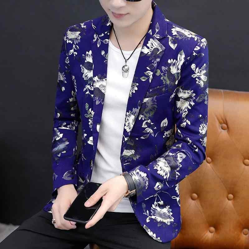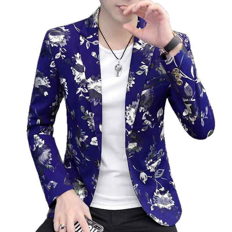 テーラードジャケット メンズ 秋冬 個性的 花柄 プリント 総柄 スリムフィット 韓国風 テーラードカラー シングルボタン 綿混 ポリエステル イージーケア カジュアル 男性用 おしゃれ
