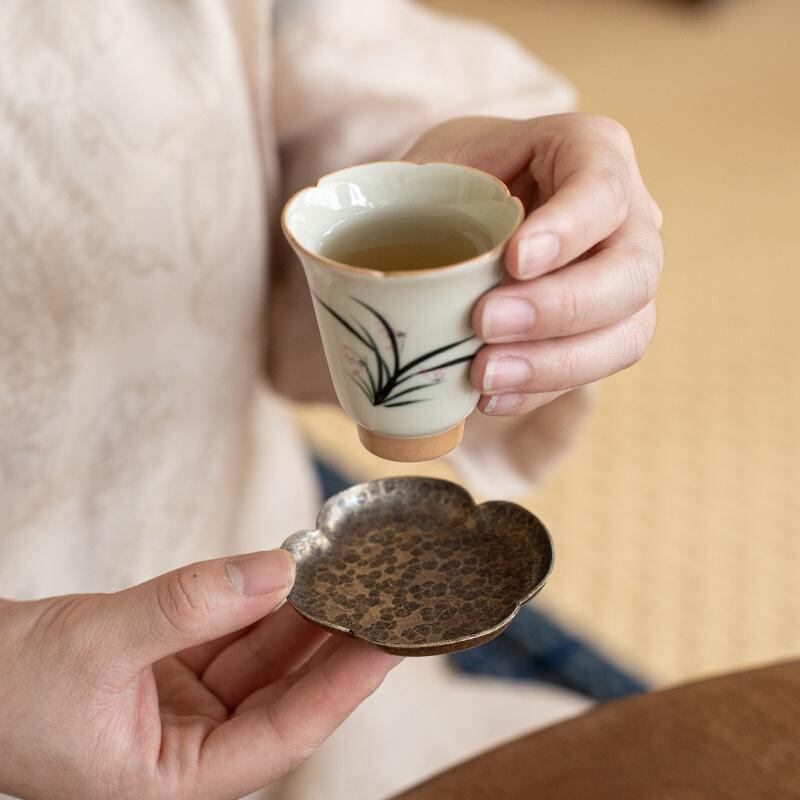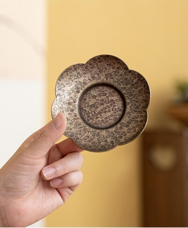 茶托 純銅 真鍮 鎚目 コースター 滑り止め 断熱 耐熱 ハンドメイド 新中華風 おしゃれ 茶道 おもてなし 来客用 テーブルウェア 和モダン 高級感 カップマット 卓上雑貨
