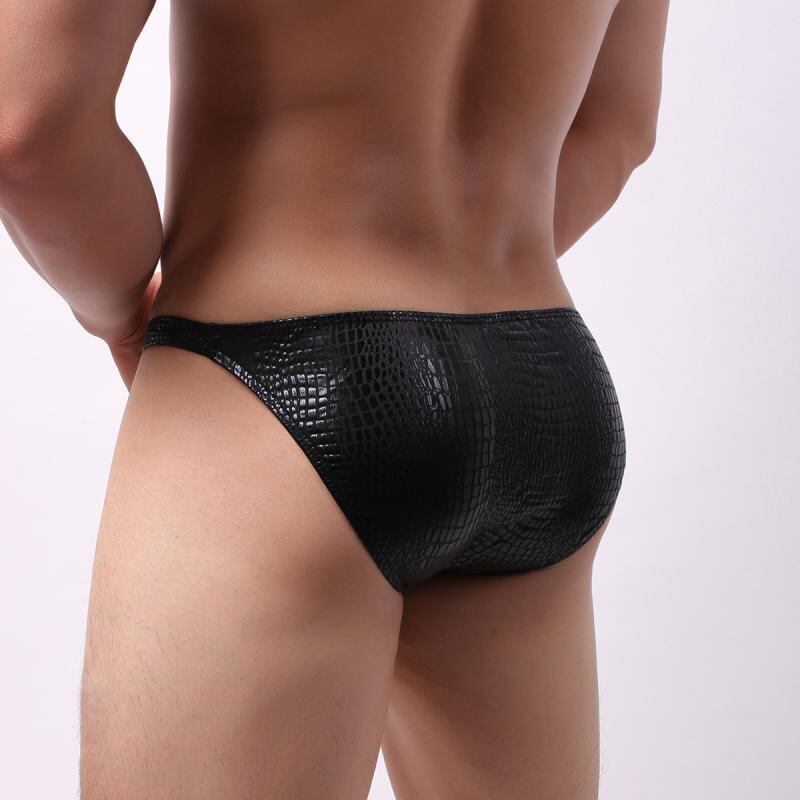 メンズ 三角ブリーフ 男性用 フェイクレザー クロコダイル柄 ローライズ スリム 通気性 欧米風 個性派 ファッション カジュアル ブラック ブルー シルバー ゴールド オールシーズン
