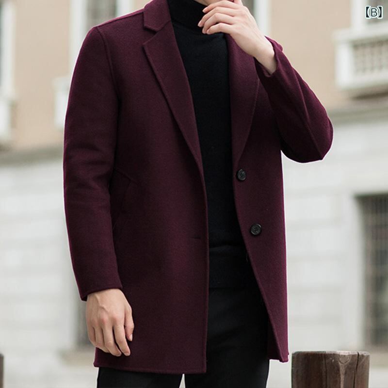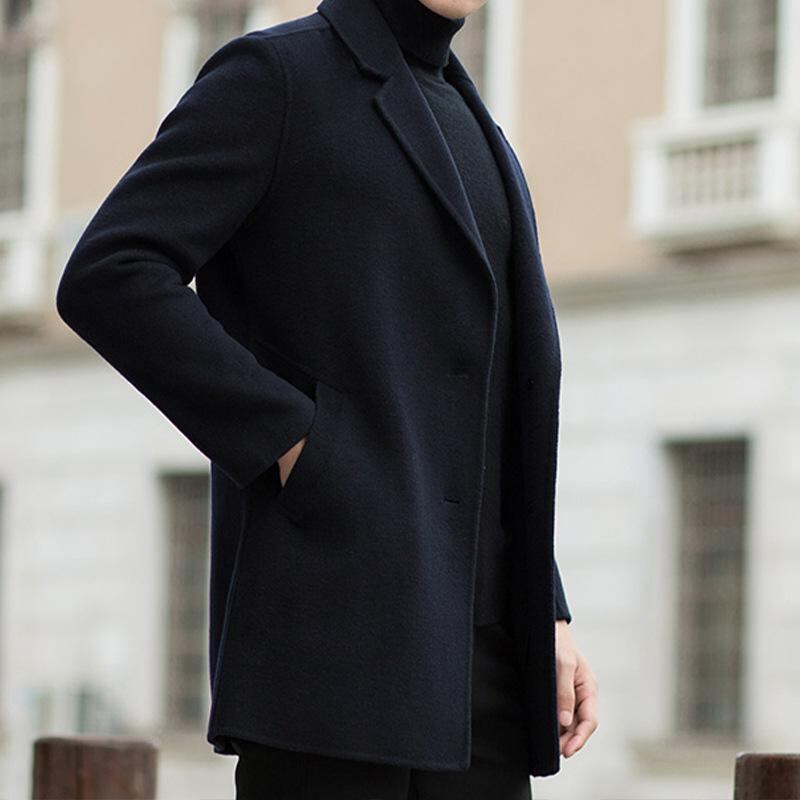 コート メンズ 男性用 秋冬 ウール100% ダブルフェイス メルトン テーラードカラー シングルブレスト ミドル丈 ロング丈 トレンチコート アウター カジュアル ビジネス ネイビー ワインレッド ダークグリーン