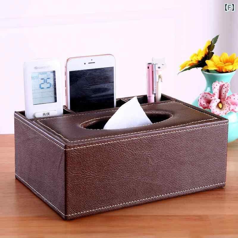 ティッシュケース 収納ボックス 多機能 レザー 木製 卓上 リビング オフィス 家庭用 モダン シンプル スクエア デザイン リモコンラック 小物入れ デスクオーガナイザー インテリア