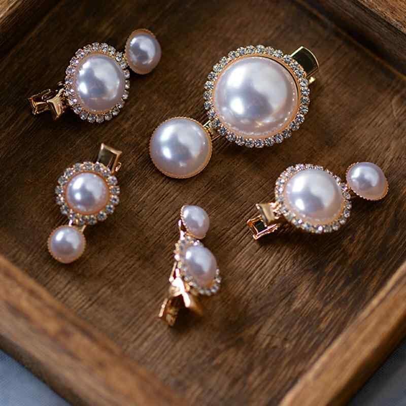 ヘアクリップ 韓国風 ロマンチック 小粒パール バレッタ シャンパンゴールド 花嫁 結婚式 ブライダル ウェディング 披露宴 フォーマル まとめ髪 アップヘア 髪飾り レトロ クラシカル