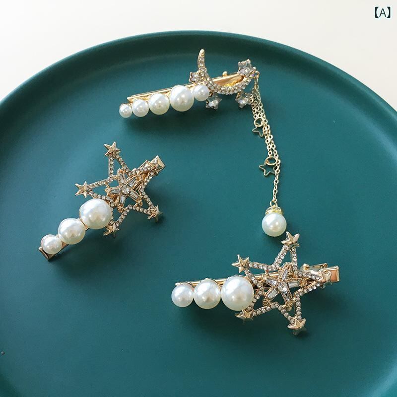 ヘアアクセサリー レディース ゴールド 合金 ジルコニア パール ヘアクリップ サイドクリップ ヘアピン 3点セット 上品 結婚式 パーティー 普段使い 旅行 撮影 万能