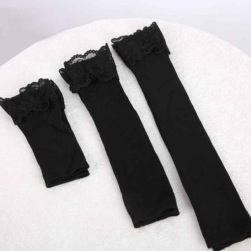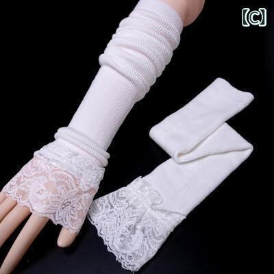 アームカバー レディース 秋冬 ニット レース 付け袖 袖カバー ミドル丈 防寒 あったか おしゃれ ブラック ホワイト 綿混素材 ファッション小物