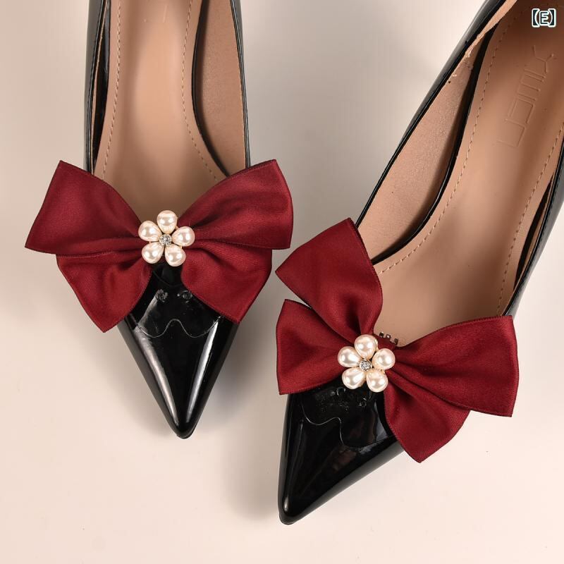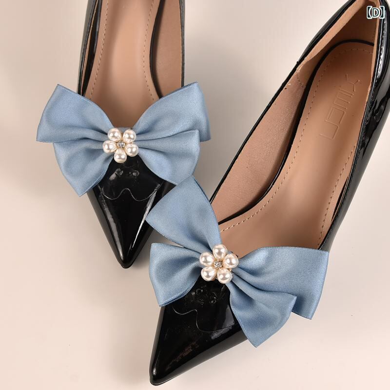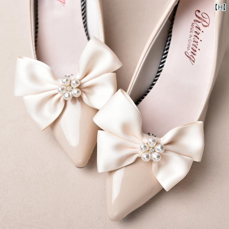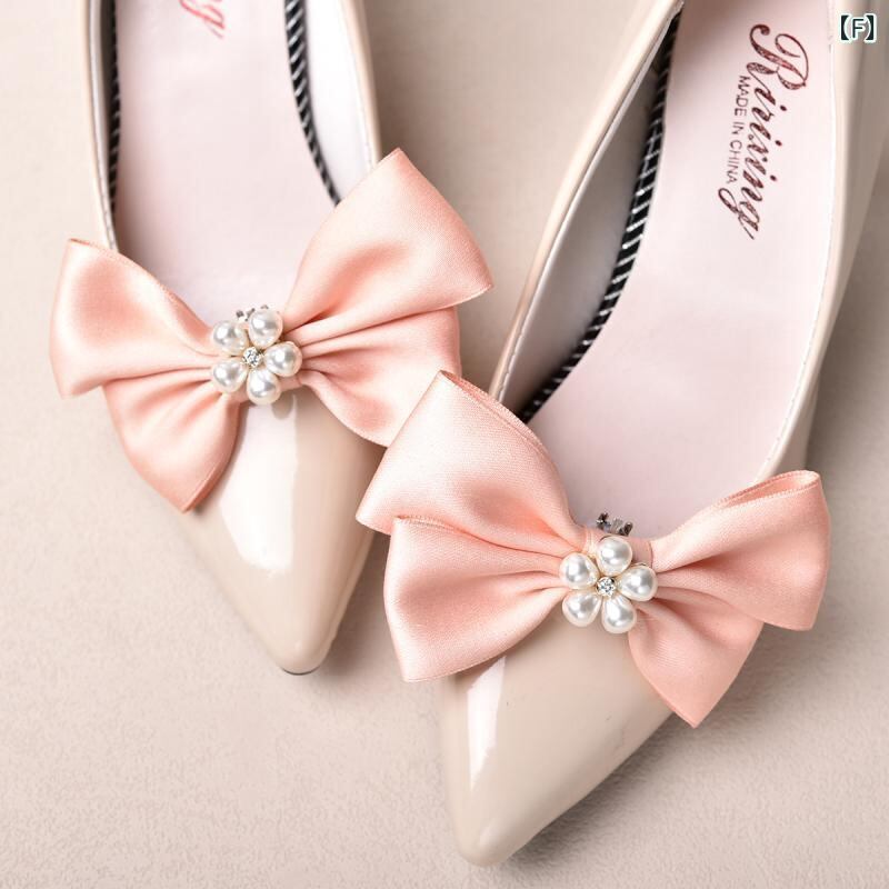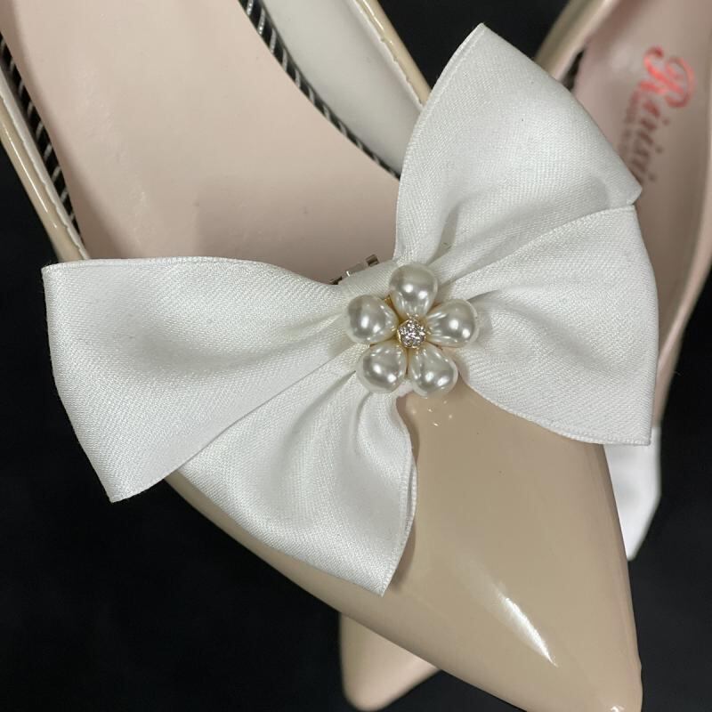 シューズクリップ 花嫁 ブライダル ウェディング 結婚式 パーティー 二次会 披露宴 ホワイト 蝶結び リボン パール調 合金 クリップタイプ 2個セット