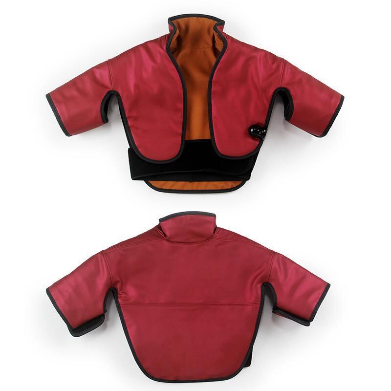 電熱ショール 遠赤外線温熱 肩 首 背中 腕 膝 脚用 ホットウォーマー 7段階温度調整 保温 防寒 寒さ対策 レザー調 レッド 冷え対策 デスクワーク 休憩 リラックス 秋冬用