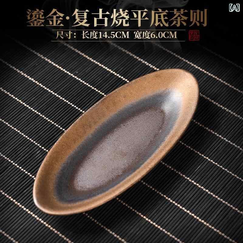 茶則 レトロ アンティーク調 鍍金 金色 粗陶 陶器 手作り ハンドメイド 家庭用 和風 禅風 平底 曲線デザイン 茶さじ 茶杓 茶べら 茶道具 中国茶 功夫茶 茶葉用 喫茶 お茶席