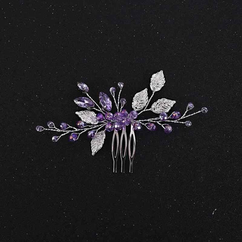 ヘアコーム レディース ウェディング ブライダル 結婚式 花嫁 リーフ 葉っぱ モチーフ サイドコーム 髪飾り ヘッドドレス クリスタル 水晶 パープル 紫 シルバー 銀 合金