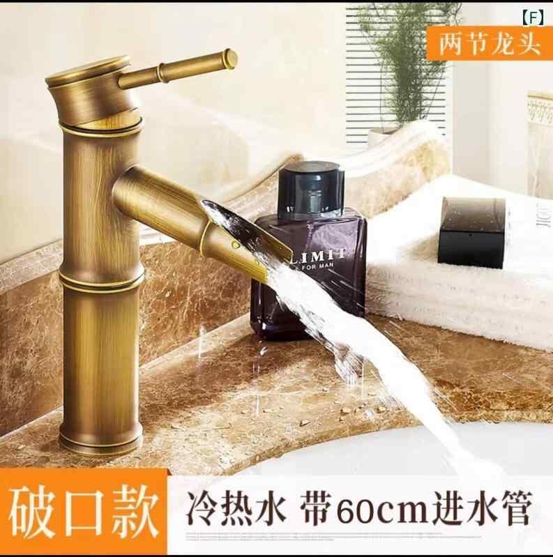 蛇口 ヨーロピアン アンティーク調 レトロ 真鍮製 竹モチーフ カウンター上設置 洗面ボウル用 台座式 水栓 浴室 洗面所 セラミックバルブ