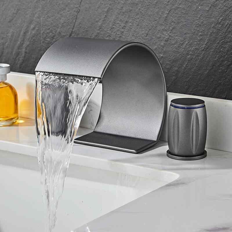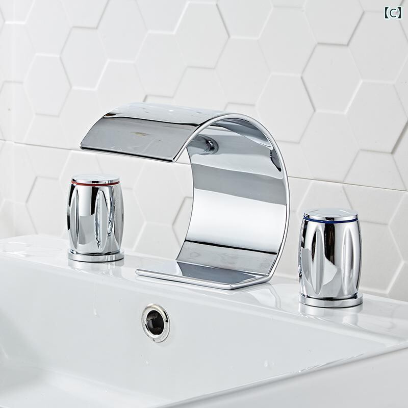 洗面台水栓 3穴 混合水栓 ダブルハンドル 銅製 ゴールド 滝型 ウォーターフォール 台付 おしゃれ モダン デザイン リフォーム
