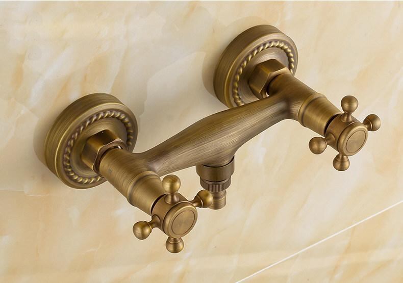 蛇口 洗濯機 シャワー兼用 壁埋込型 冷温水 混合水栓 2ハンドル アンティーク加工 レトロ調 ヨーロピアン 真鍮 黄銅製