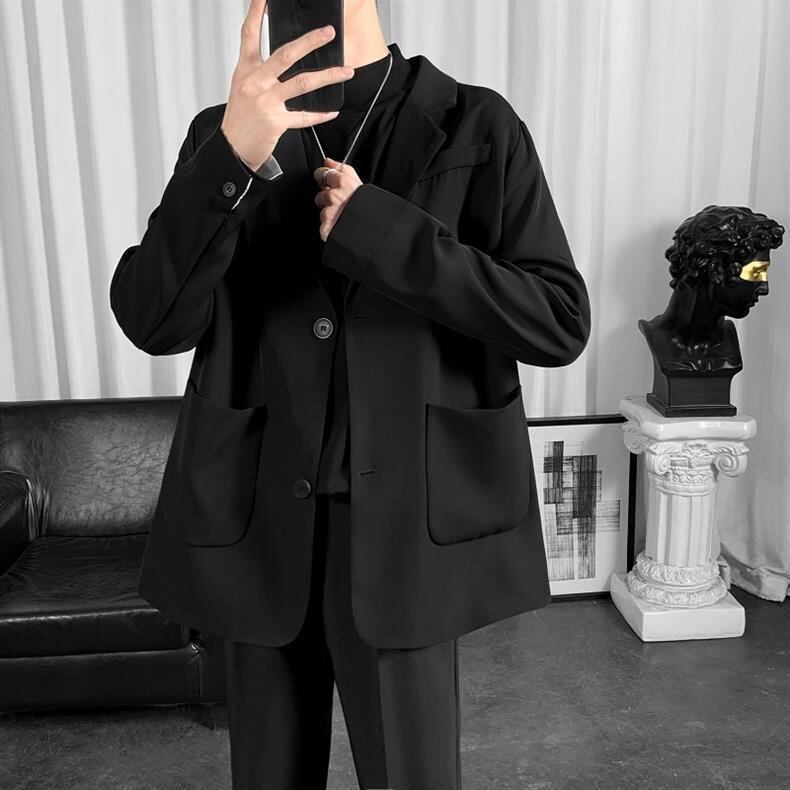 テーラードジャケット メンズ カジュアル 韓国風 トレンド スタイリッシュ ドレープ感 ゆったり オーバーサイズ 春秋 普段使い 通勤 亜麻素材 ウォッシャブル 無地 アウター